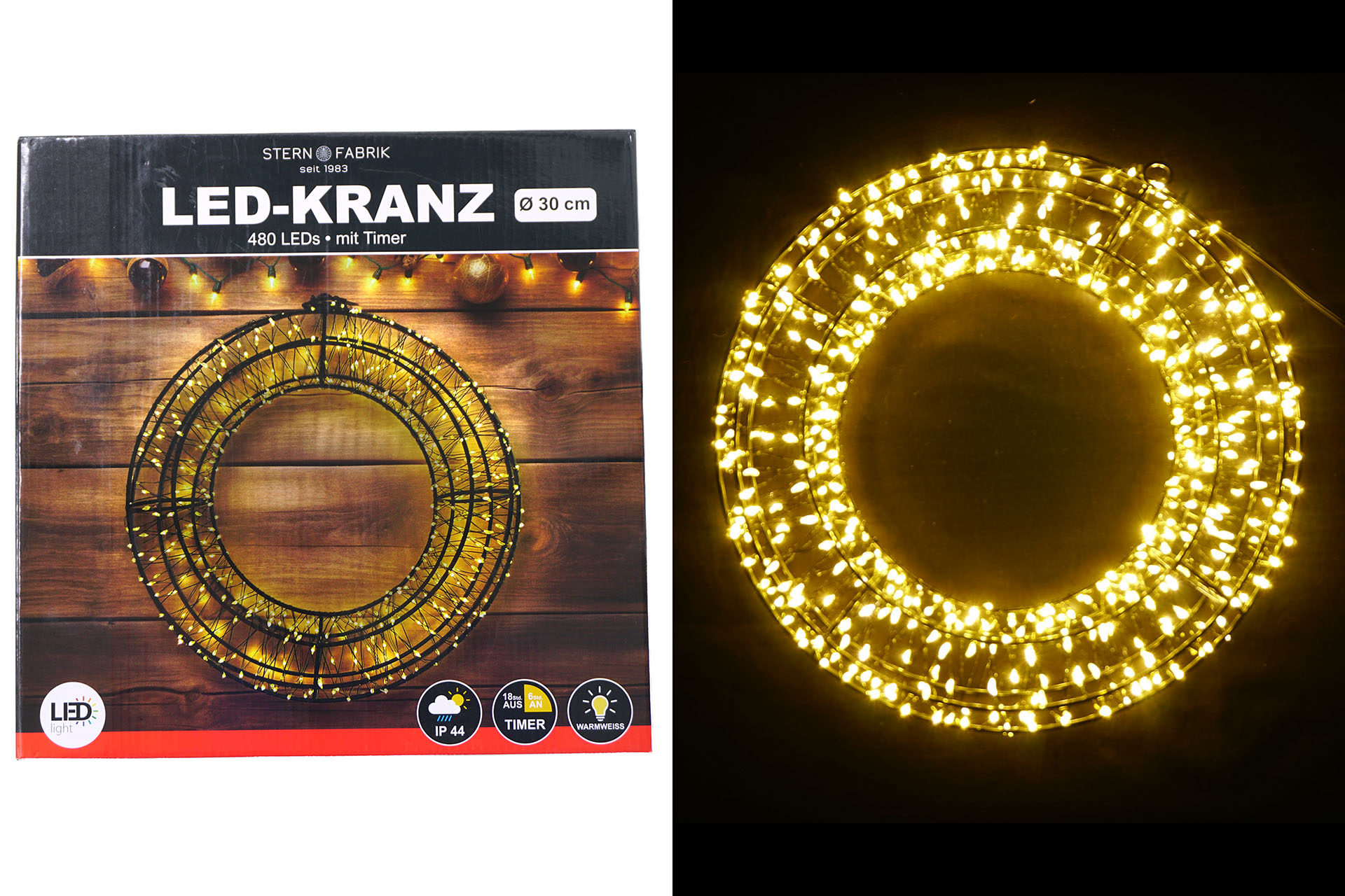 LED Kranz 30cm mit 480 LEDS Timer warmweißes Licht für außen