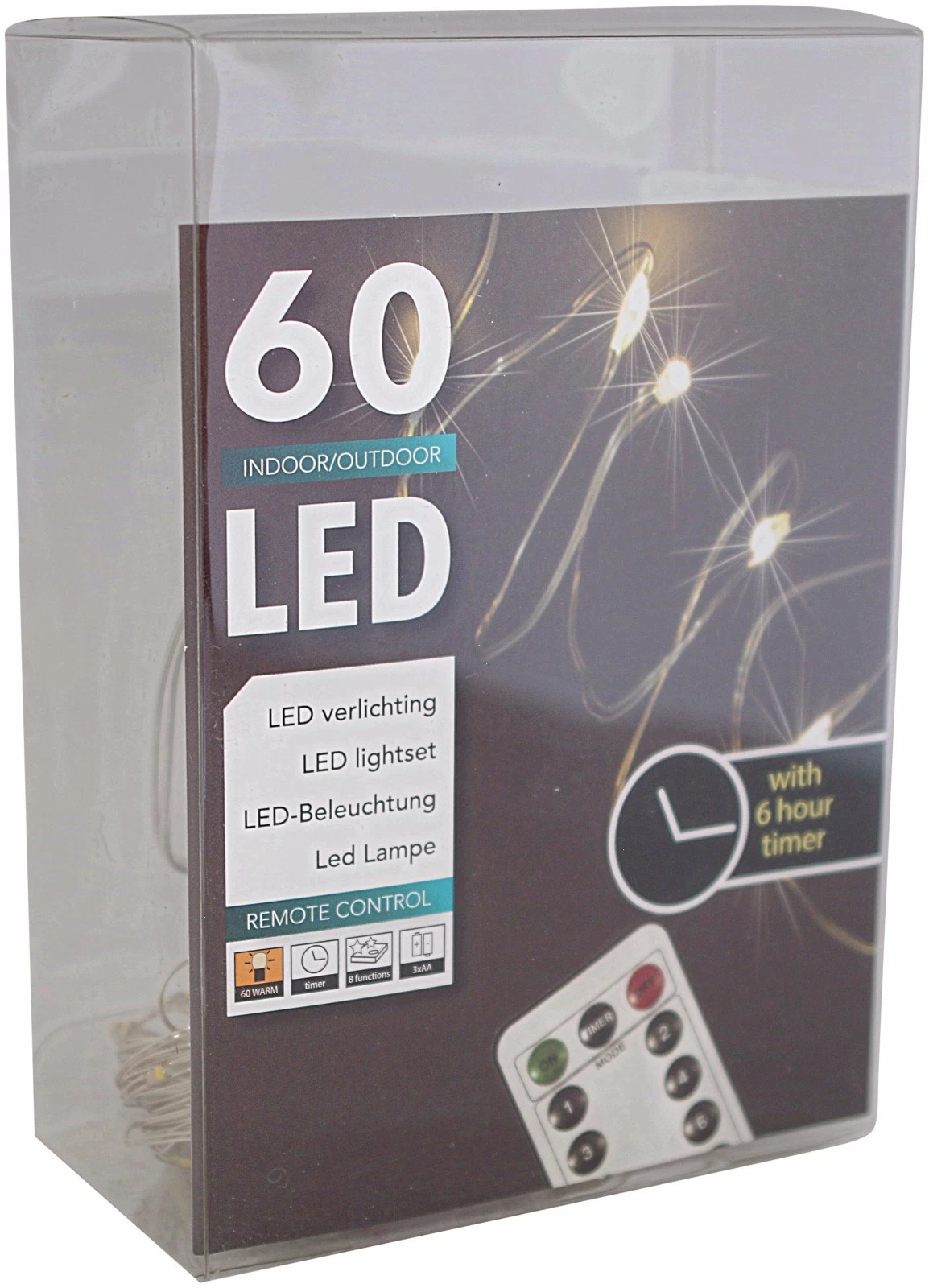Produktinformationen "60er LED Draht-Lichterkette Timer + Fernbedienung für außen und innen batteriebetrieben"